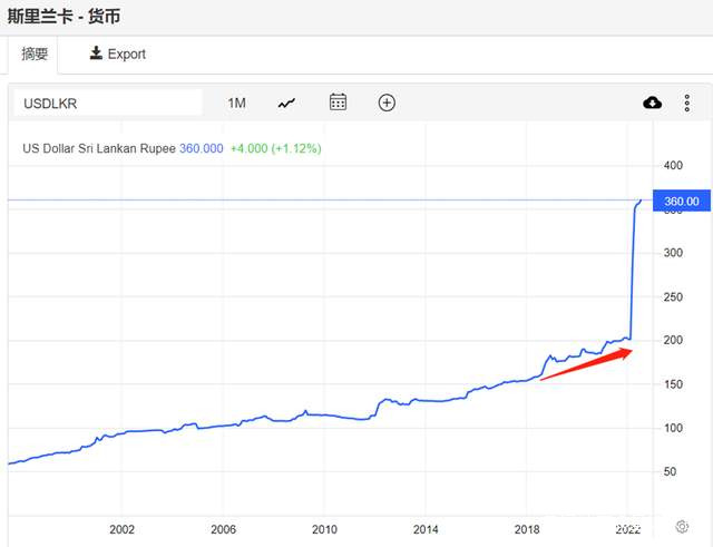 隨之而來的是,2019年開始,斯里蘭卡貨幣就出現大幅度貶值,從150貶值到200,並於最近因為國家破產,而一口氣貶值到360。