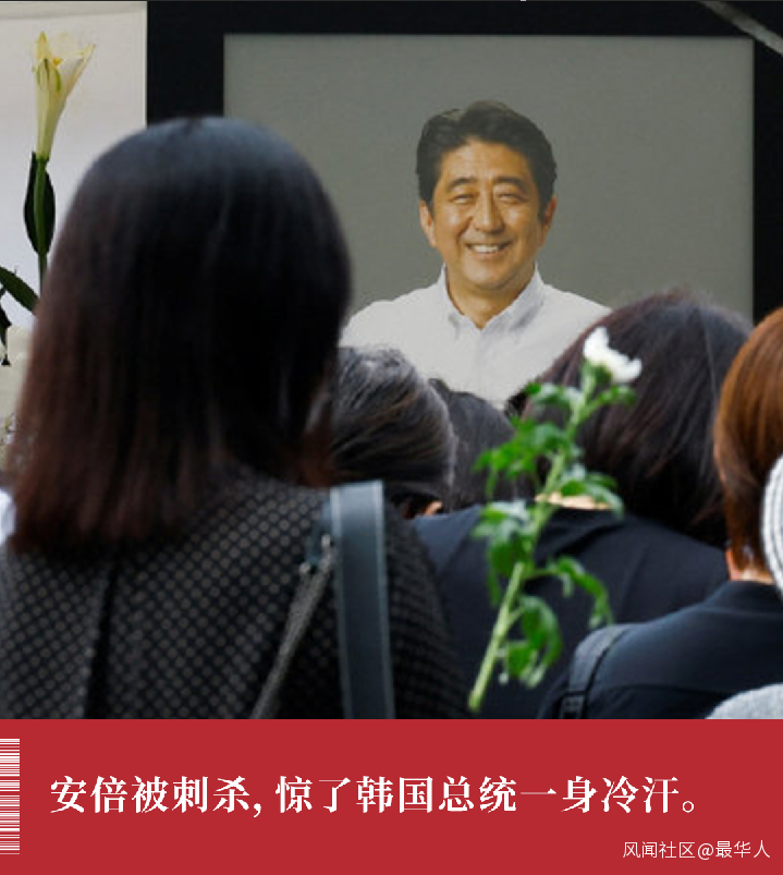 有人調侃説,安倍被刺殺,韓國總統驚出了一身冷汗。