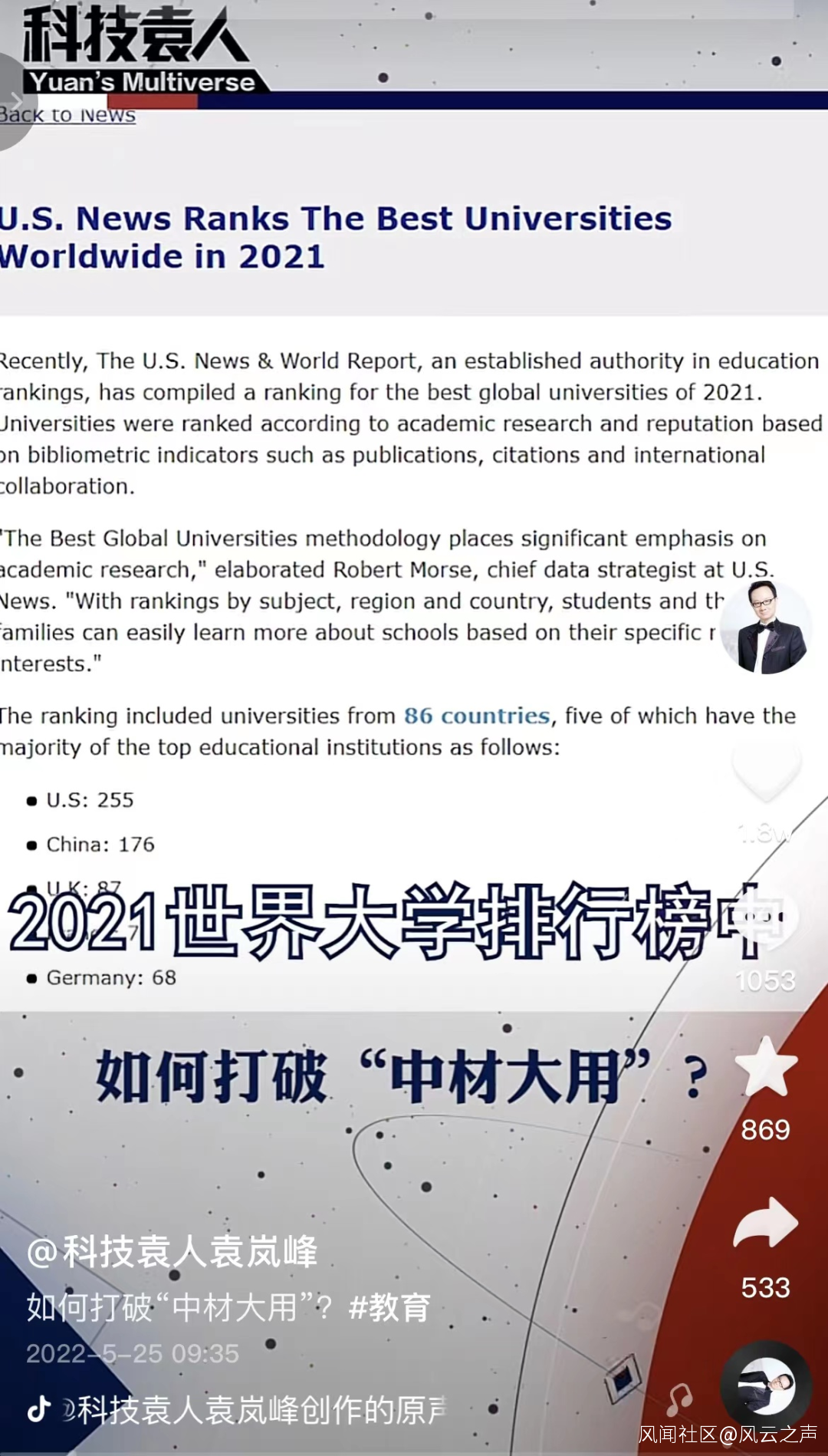 用數論文、數帽子作為評價標準,導致“中材大用”。這種體系能產生大量的二流成果,卻難以產生一流成果,只適合跟隨,不適合趕超。