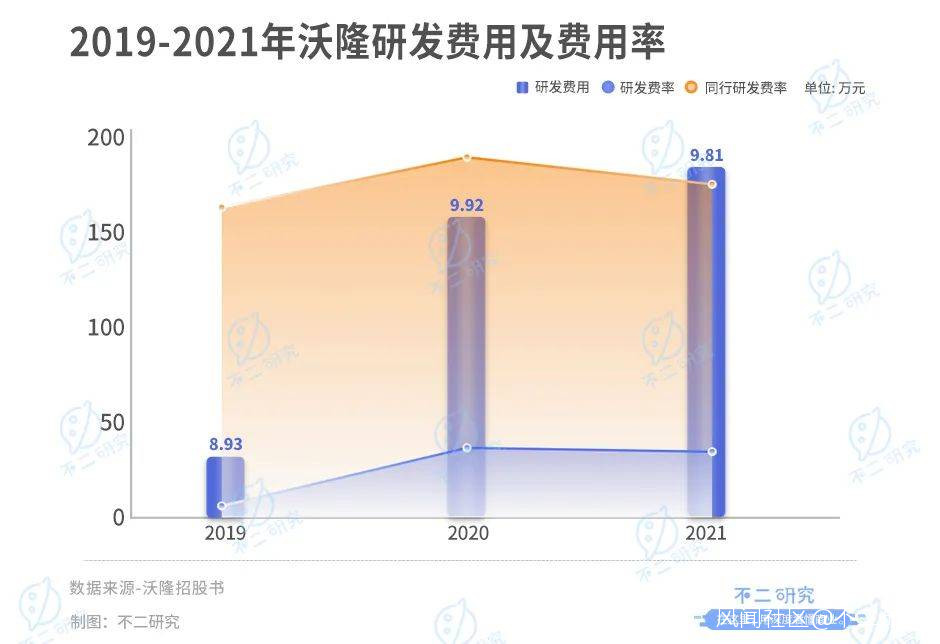 雖然仍然低於同行業水平,但從2020年開始,沃隆逐漸注重研發投入,研發費用支出及佔比提升明顯,或許能為日後超車打下基礎。