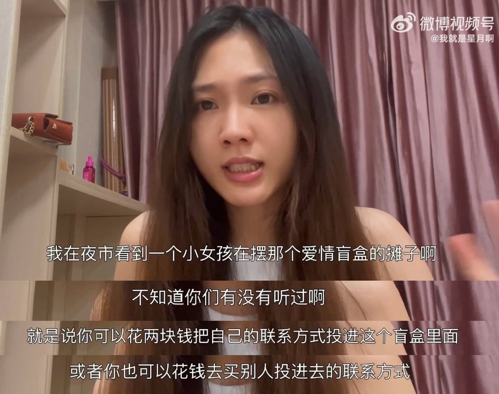 (小姐姐科普説,就是可以花兩塊錢把自己的聯繫方式扔進盲盒裏邊,又或者是花兩塊錢去抽盲盒裏別人的聯繫方式,屬於老天爺決定有緣人了。)