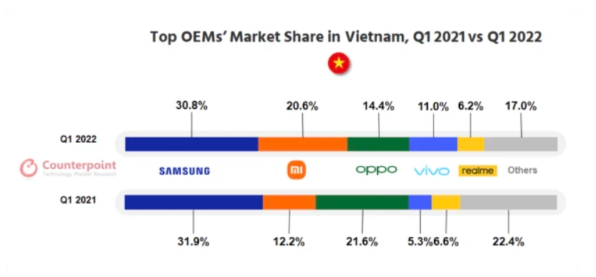 月度越南市場份額追蹤報告 圖源:Counterpoint Research