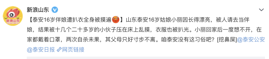 最臭名昭著,看得人咬牙切齒的,還有曾經的山東泰安伴娘事件。