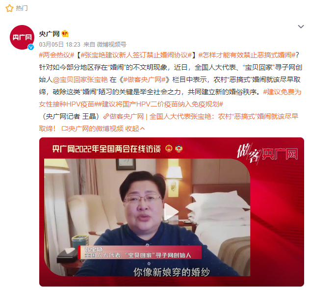 全國人大代表,“寶貝回家”的創始人張寶豔也曾在兩會上提議過。