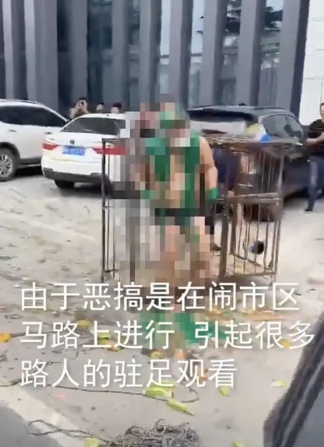 河南開封,新郎被脱到只剩內褲、關進鐵籠、被砸雞蛋、噴綠漆……