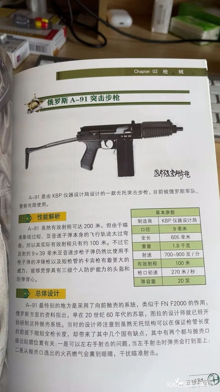 所以最終破案了,這本書上圖片是9A91突擊步槍,編輯少打了一個9字,文字介紹又用A91的資料,整頁紙都弄錯了!