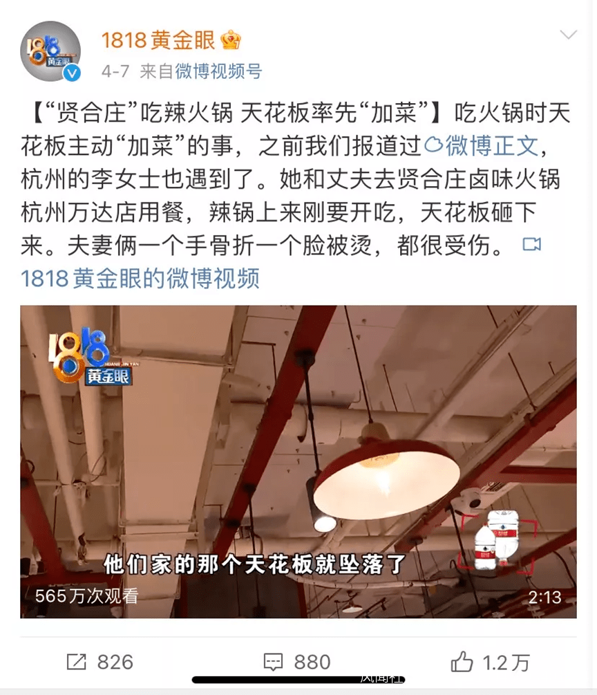 天花板掉落砸傷顧客、火鍋突然鍋底爆炸、鍋底吃出蛆蟲和塑料、大腸桿菌超標等各種熱搜頻出。