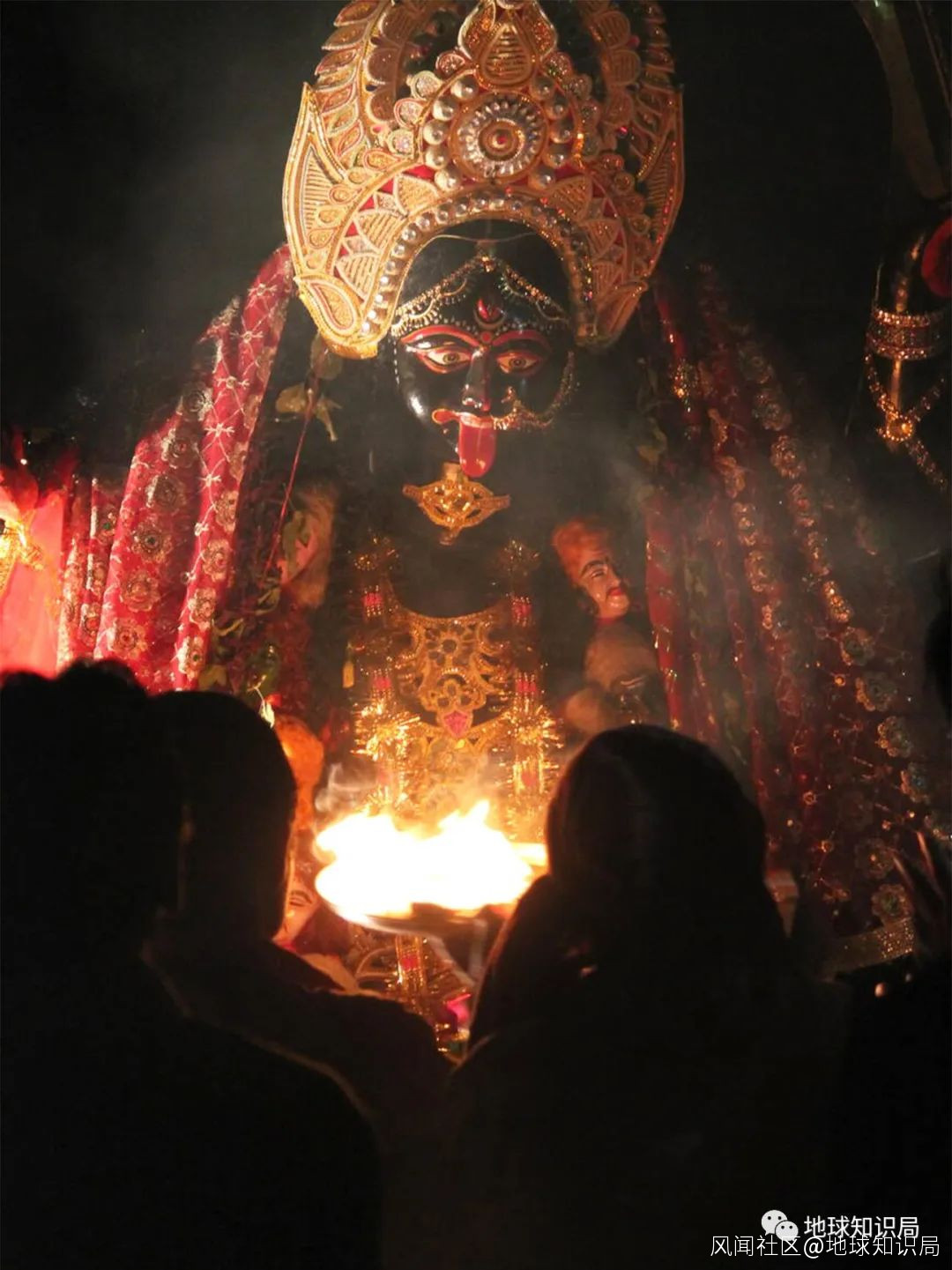 最典型的是迦梨女神,她是美麗温婉的雪山神女的諸多化身之一。和我們一般認知當中慈悲、善良、温柔的女神的形象不同,迦梨女神更多的與殘暴血腥和黑暗相關。