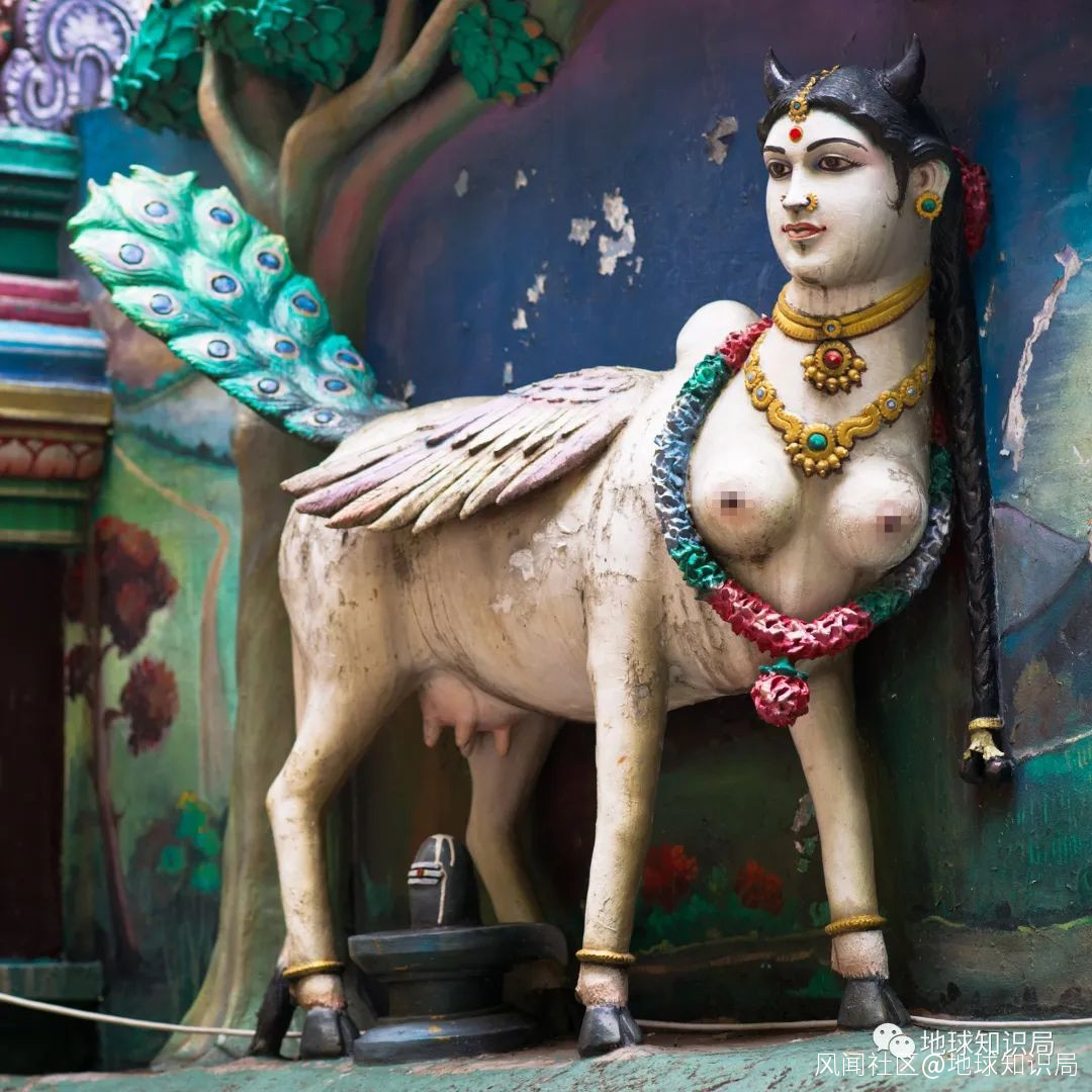 比如蛇在印度教中就常作為神的護衞形象存在。印度教創世神話中也有“毗濕奴躺在千頭眼鏡蛇舍沙背上,漂浮在原始的大海上”的説法。再比如“神牛難迪”是濕婆大神的坐騎,而印度教經典吠陀中則將母牛尊奉為宇宙的象徵。