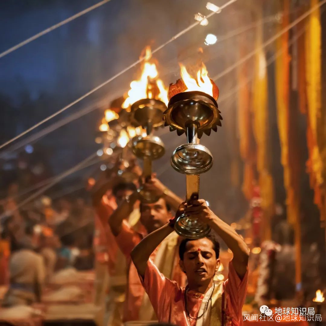 絕大多數印度人的一生都與宗教離不開關係,他們浸潤在神的世界中。虔誠的印度教徒一天從早到晚都在祭祀,人生的盡頭會追求死在恆河邊,火化之後將骨灰投入恆河,以求得解脱。