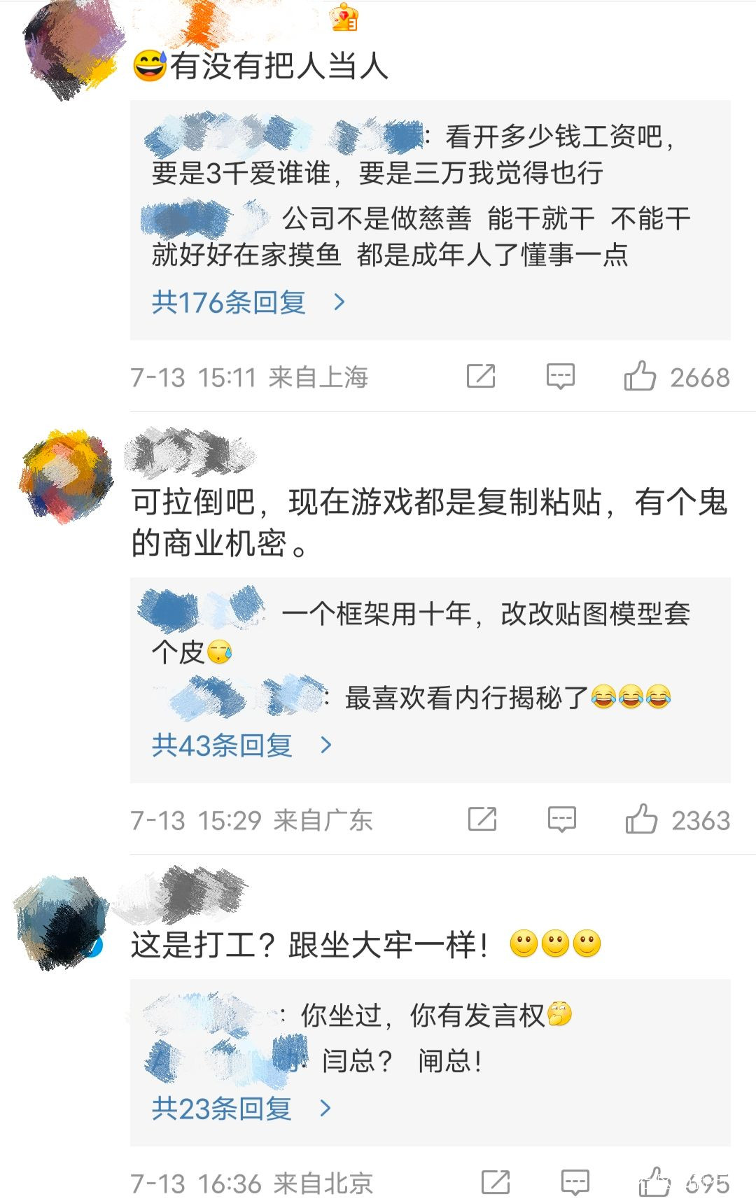 有網友指出,“侵犯隱私權,你要是為了防止遊戲泄密大可在電腦上監控,你搞個攝像頭對準人什麼意思啊”“還防泄密,忽悠誰呢…電腦直接開後台監控就好了,哪裏需要用攝像頭懟人拍,這還要多個人盯監控,不是自己找事做嗎”……