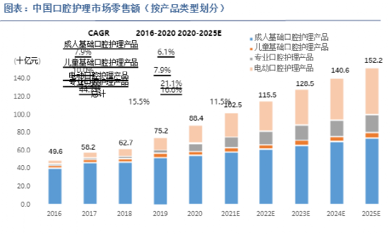 對於消費者來説,牙膏是日常用品,一支牙膏能夠使用一個半月左右,在消費榜單中屬於長期消耗品,非常考驗企業的經營能力,不過也正是這種需求連綿不斷的商品,促使口腔清潔市場規模不斷增長。