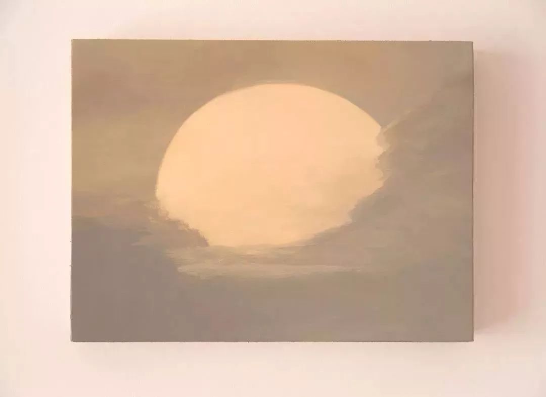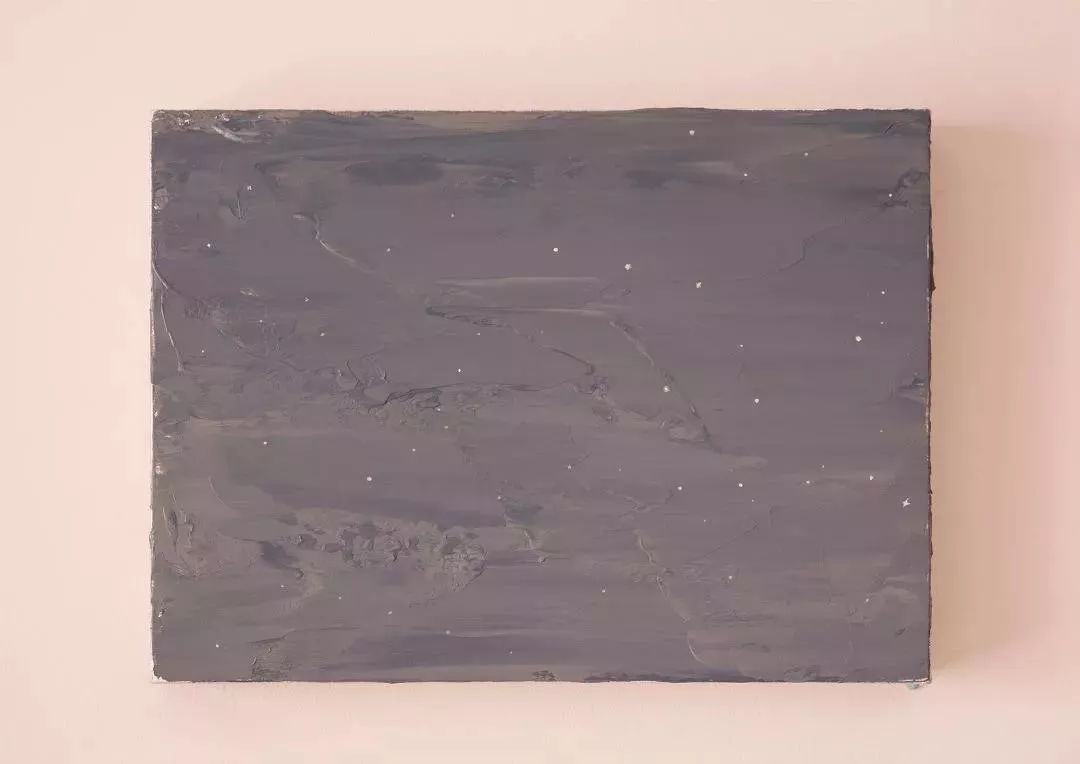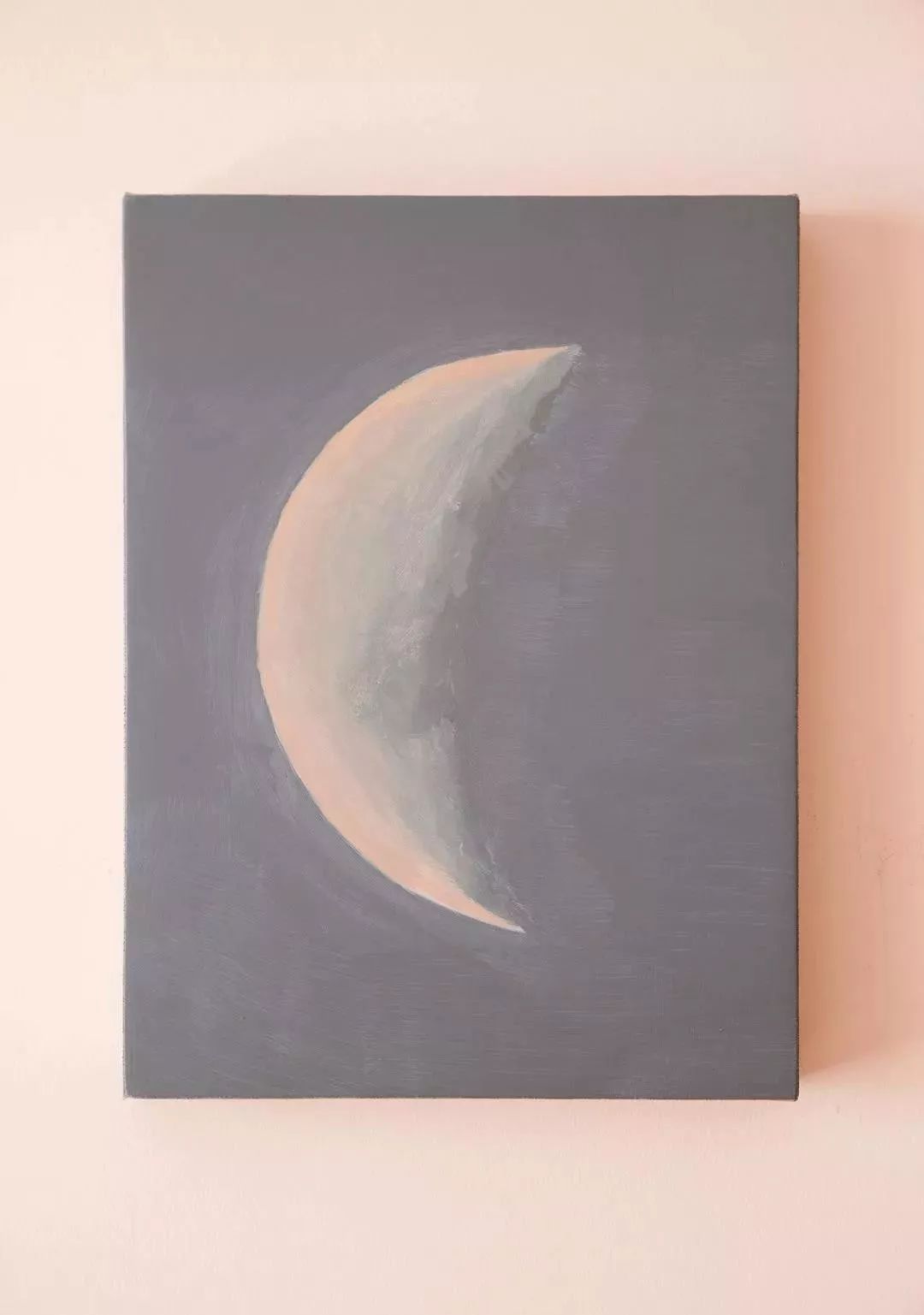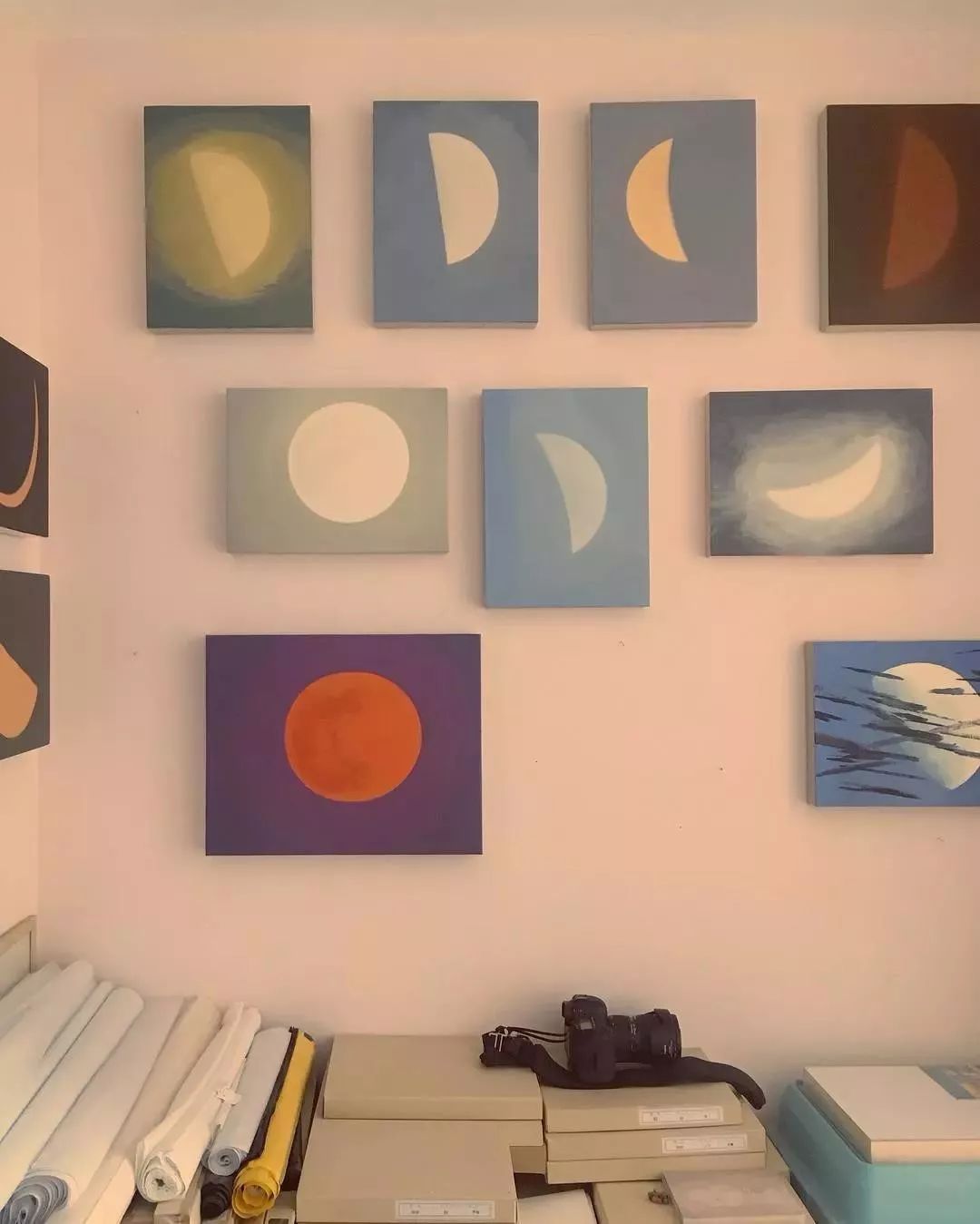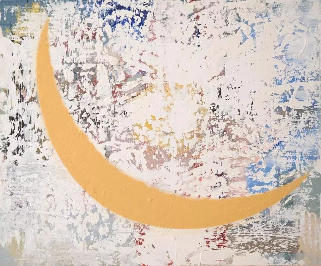 賴巍將自己心中的月亮與思索表現在畫布上。