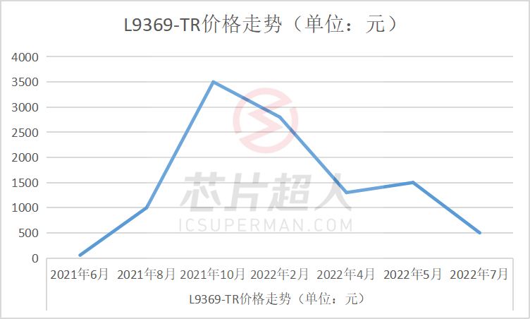 L9369-TR從去年9月《原價13元現價4000元,博世ESP芯片黑市價格暴漲300倍》的文章中火出圈。這款芯片自去年9月漲到3000多元之後,維持了一段時間的高價,今年2月開始有了跳水式的跌價,並一路跌至目前的五六百元。