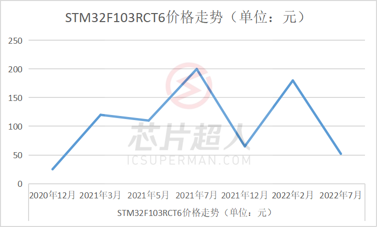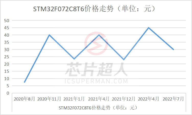 如今STM32F103RCT6已經攔腰降至50元左右,STM32F072C8T6雖然在今年年初大漲過,但很快降至30元左右。