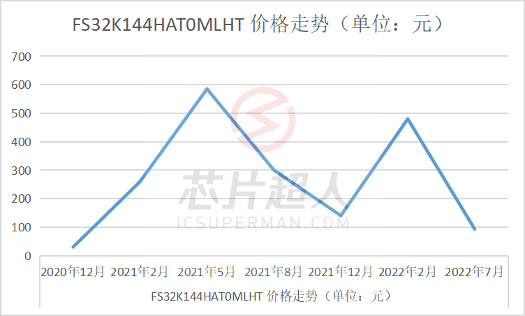 NXP的32位車用MCU FS32K144HAT0MLHT也經歷了一輪暴漲,從30元左右一路逼近600元。一年多過去,其價格已經回落至100元以下。