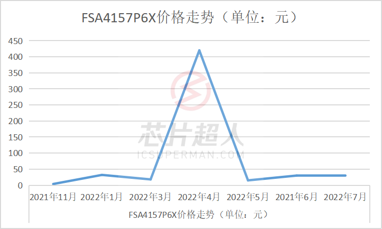 安森美的模擬音頻開關 FSA4157P6X ,幾毛至一元錢的價格在上一季度漲到400+,如今降至30元左右。