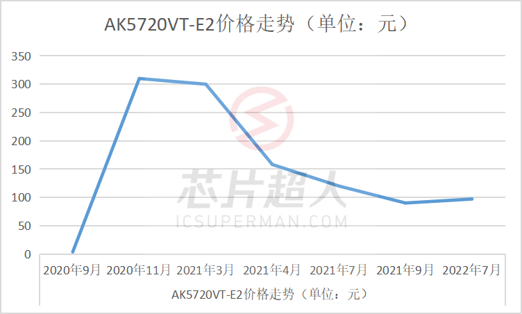 在2020年一眾芯片缺貨漲價大潮中,AKM(旭化成)漲勢驚人,2020年11月份前後一度超過彼時“炸子雞”ST:需求滿天飛,部分型號暴漲幾十倍是常態。