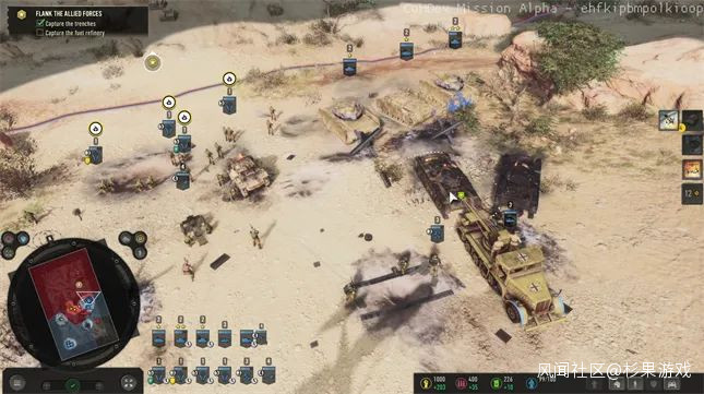 説到坦克,這裏就不得不提一下《英雄連3》為不同派系設計的單位和平衡性。作為關卡主角的德國非洲軍團擁有強大的機動性,麾下的中型坦克能夠在地圖中快速機動,類似傳統 RTS 中的 Hit & Run 玩法;對手英國陸軍則更注重防守,炮兵和空中單位支援很到位,能給玩家造成不小的麻煩。