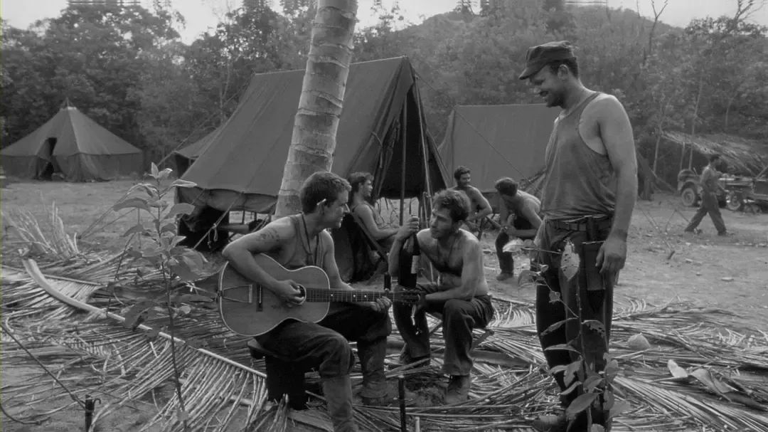 在作品中,戰場變為了“二戰”中的南太平洋上的一個小島。作戰圖上,紅線代表着同盟國的美軍,士兵威特的命運被紅線所控制。他曾因醉心於太平洋的陽光、椰林和海灘從軍隊中逃離,與當地的土著過起世外桃源的生活,但又被上司找到再次加入戰場。