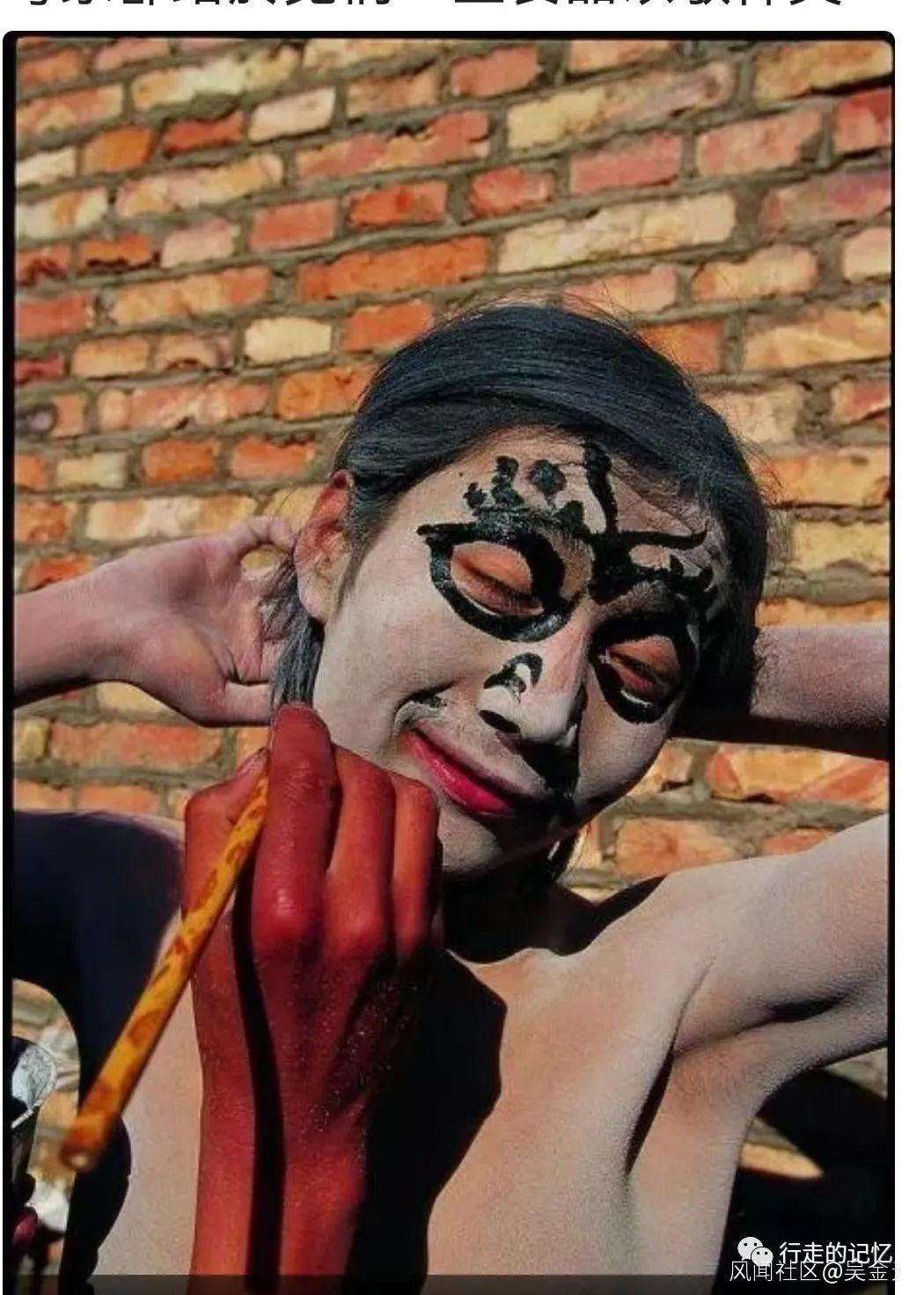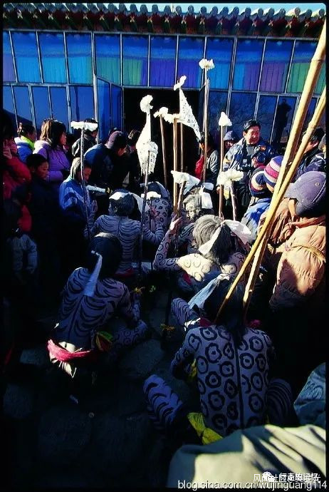 青海高原的寒冬,室外氣温多在零下十幾、二十度.據説,過去還要先用紅辣椒麪塗身以取暖。原先化妝所用的顏料是鍋底灰,現在被墨汁所替代。