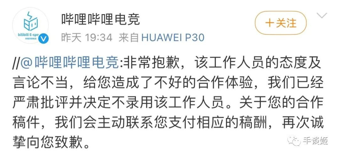 當天下午,B站電競官方作出道歉,並表示不錄用該工作人員。