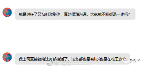 那麼接下來就是該運營人員的奇葩發言了:“法務部也是有kpi,要吃工資的。”