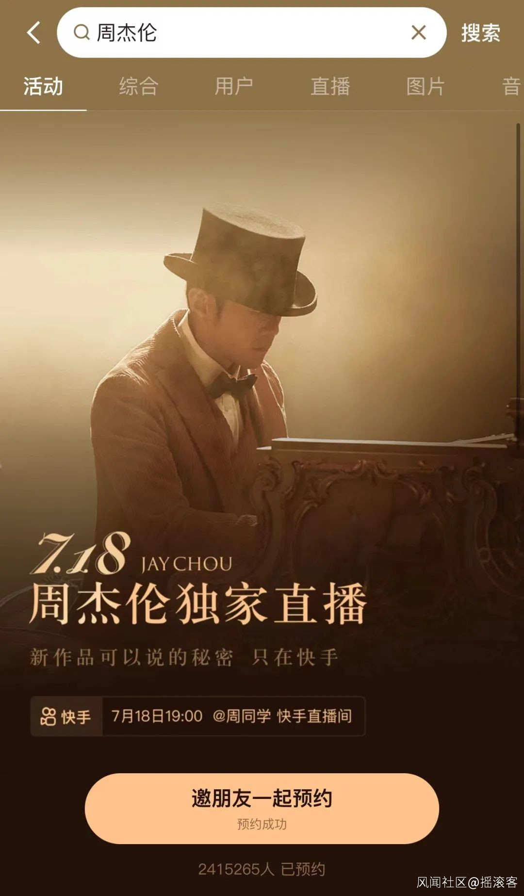 可能快手官方也看到了羣眾的呼喊,於是在7月18號安排上了杰倫的獨家直播,截至昨天,預約人數已突破200萬。