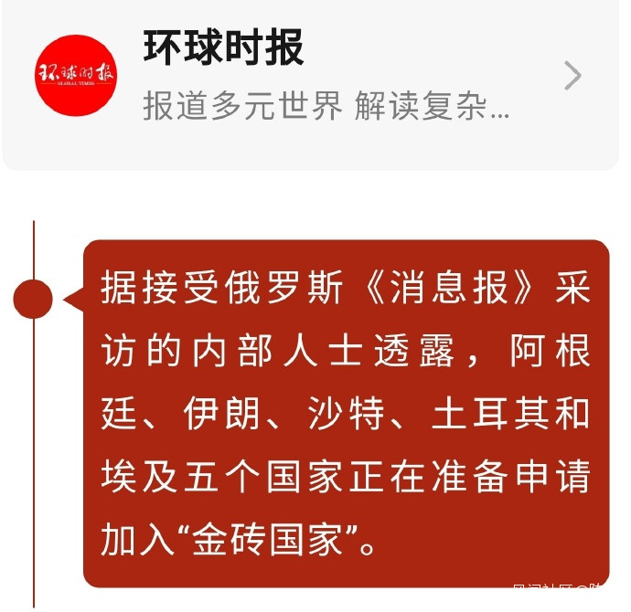 1. 俄羅斯消息,在上月的阿根廷、伊朗之後,沙特、土耳其和埃及也想加入金磚國家組織。這幾國還都有些實力,沙特是油霸,土耳其和埃及人口都有1億級別,地緣和周邊影響力不小。都來進金磚,幾個意思?
