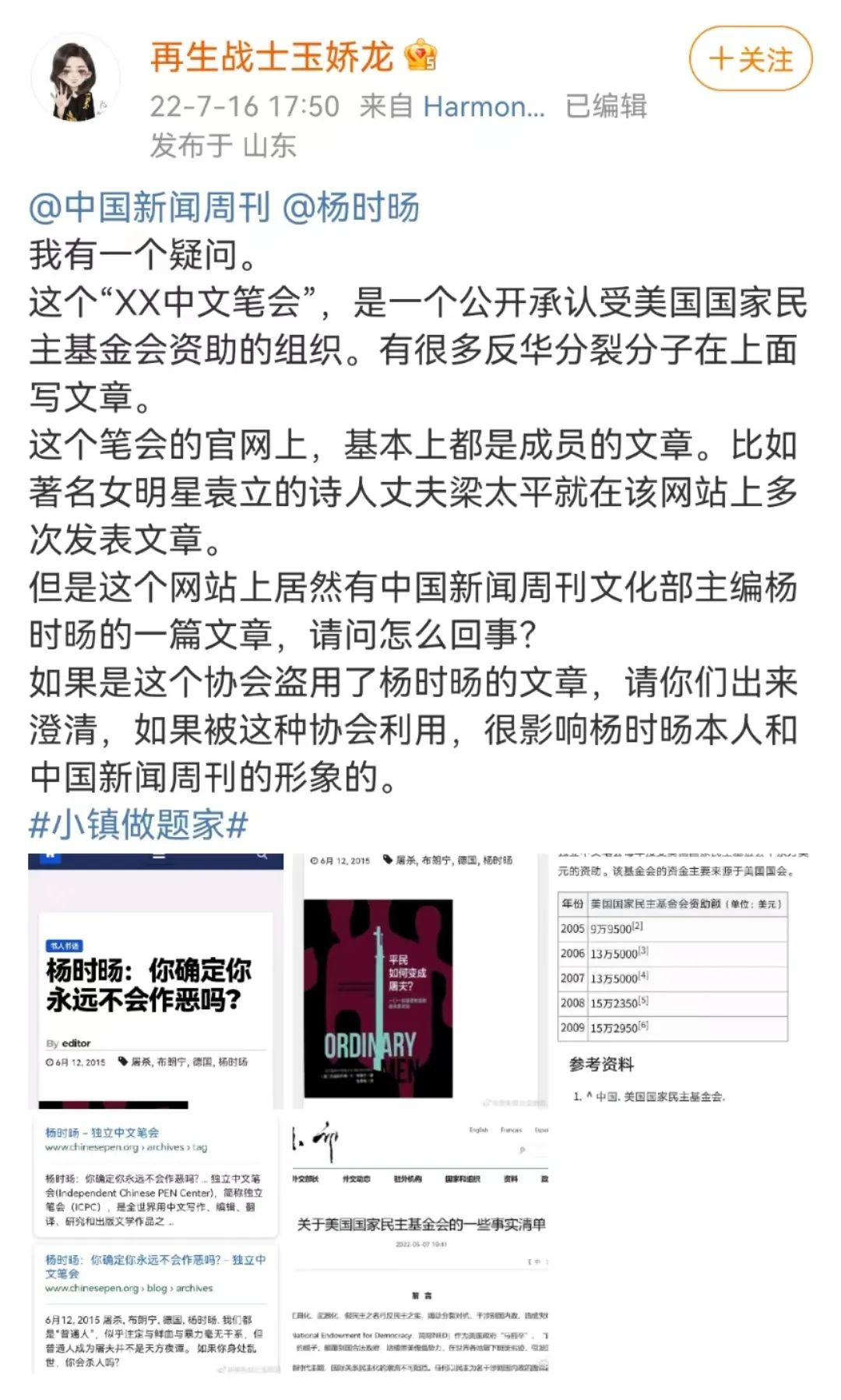 後面第二波輿情發酵是這樣的,《某某新聞週刊》的文化部主任,寫了一篇大作,重點內容如下。