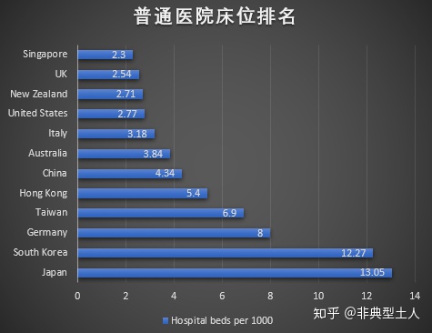 4、“就診率高”=看病掛號等待時間少,我們大力普及的社康中心、社區醫療站,極大的減輕了三甲醫院的就診壓力並且提供了後續愈後恢復的拿藥換藥服務,變相的提高了三甲醫院的病牀週轉率。而即使純粹比病牀數,美國的普通病牀數是不如我國的。每千人病牀數,美國2.77,中國4.34。參看2020年的統計數據: