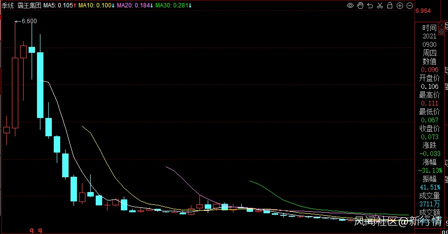 截至今日,霸王集團從股價巔峯時期為6.6港元/股,跌到現在港元0.059港元/股,股價已經跌去99%,市值僅為1.87億港元。