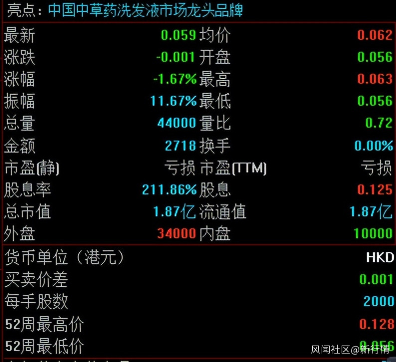 截至今日,霸王集團從股價巔峯時期為6.6港元/股,跌到現在港元0.059港元/股,股價已經跌去99%,市值僅為1.87億港元。