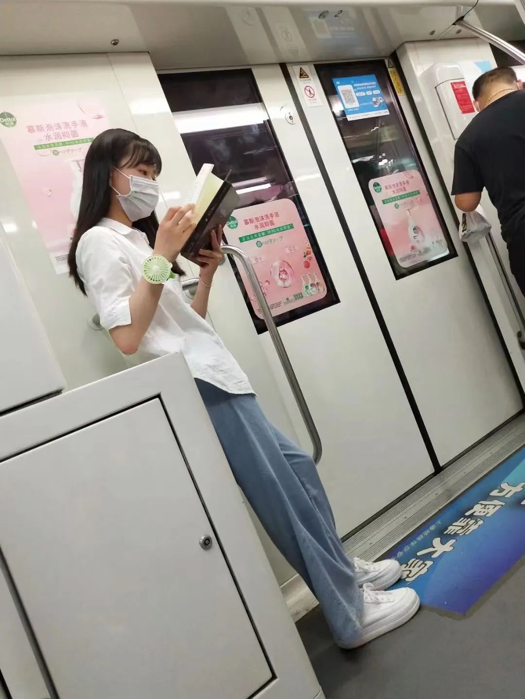 在地鐵上看書的邵一卜(圖片來自邵媽媽)