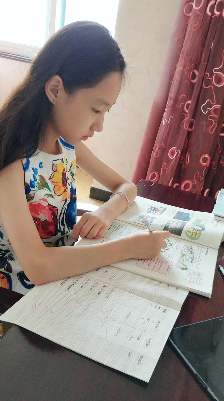 鏡頭中的邵一卜正低頭攻克着手頭的英語作業,不遠處是翠綠的大山與陣陣蟬鳴。