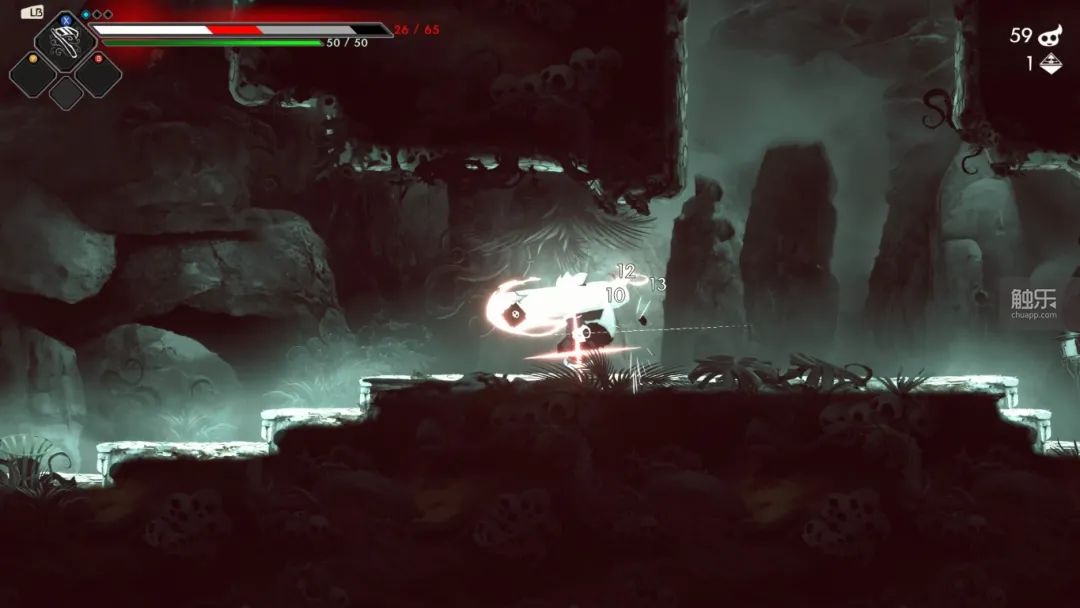 就玩法上來説,《祝你好死》和絕大多數橫板Roguelike遊戲差不多。玩家需要一輪又一輪地闖關,解鎖不同的道具,反覆擊敗幾個張牙舞爪的Boss,以及,解鎖更多的道具……遊戲的戰鬥環節還不錯,小死神的打擊動作很酷,動畫也繪製得很精緻。不過我覺得角色的普通攻擊比較僵硬,攻擊後搖很長,而且部分動作不能通過技能和衝擊取消,這導致我經常在暢快連招的過程中被痛擊。加上敵人的種類比較少,很多時候只能無奈地反覆蹭刀,體驗不是很好。