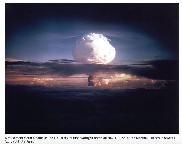 按:另附一條來自共青團中央微博的消息——美國哥倫比亞大學發現,太平洋島國馬紹爾羣島的核輻射水平高於發生核泄漏事故的日本福島和烏克蘭切爾諾貝利。相關報道指出,自二戰後,美國在馬紹爾羣島進行了至少65次核試驗。科學家採集了土壤樣本,對核輻射物質進行測定。他們發現有些島嶼的核輻射強度是福島的10到1000倍,是切爾諾貝利禁區的10倍。相關報道請參見:https://baijiahao.baidu.com/s?id=1653858001849244021&wfr=spider&for=pc