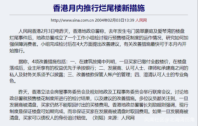 為什麼香港從2003年之後就未曾出現過爛尾樓,本質上就是因為香港擁有一套完善的、購房人利益優先的監管制度