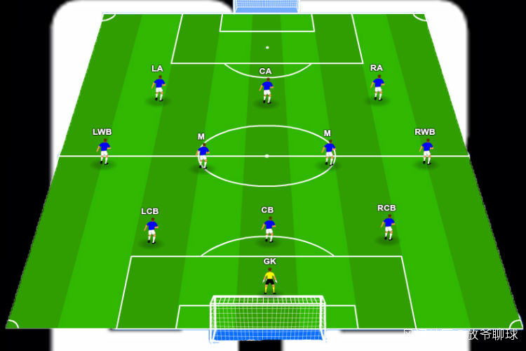 正是得益於3後衞的存在,原本在4後衞體系下需要承擔諸多防守任務的兩名邊後衞將會得到側面解放。他們可以在進攻中大幅前插,甚至成為球隊的兩名邊鋒;也能在一定情況下回撤到後防線,成為球隊的兩名邊後衞,將原本的3後衞陣型變陣為防守覆蓋面積更大的5後衞陣型。