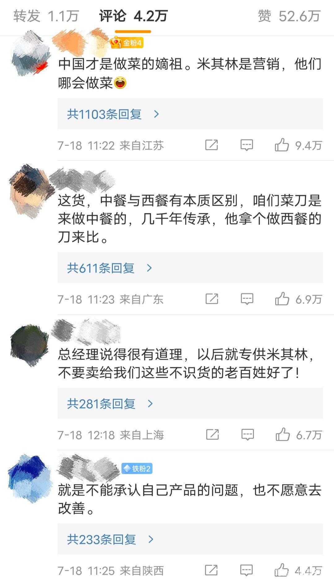稱“中國刀工不及米其林廚師”,張小泉總經理道歉_風聞