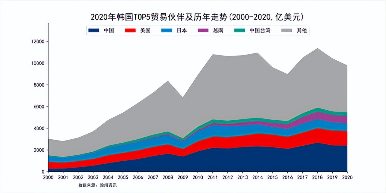 從整個國際貿易來看,中國是韓國最大的貿易伙伴。