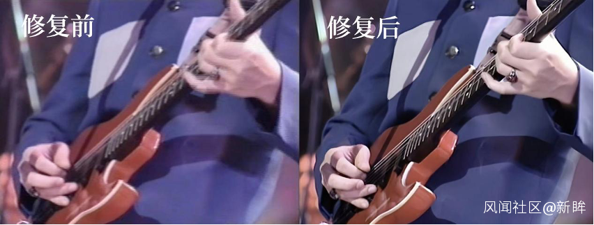 畫質修復,是擺在修復團隊面前的第一個要攻克的點。受限於當時的設備和技術條件,早期演唱會片源需要解決畫面模糊不清、色彩/亮度/舞台氛圍感以及人像面部修復三個環節的難題,這無疑讓修復難度陡增,火山引擎的解題思路是把片源中的偽像一層層剝離,通過清晰度增強和瑕疵修復算法、自適應分區域色彩亮度增強算法、自適應人像增強算法等技術適時介入,一點點還原出演唱會里的熱鬧氣氛。