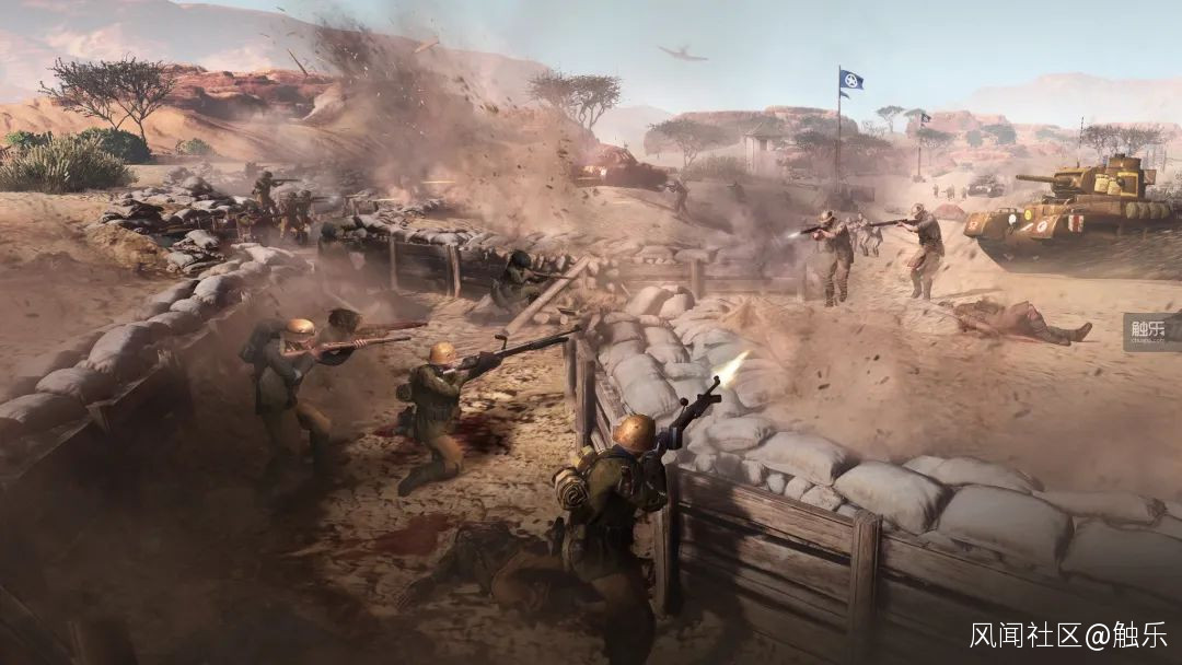 這篇文章實際上是為了《英雄連3》寫的。觸樂在6月底受世嘉邀請,參加了《英雄連3》單機戰役的測試,時間很短,只能玩24小時,戰役也僅提供了北非戰場上的一關。因而,我沒法聊它的平衡性或是兵種設計之類的東西。相比於《英雄連2》,3代的畫面和引擎有了全面的升級,它看起來的確更酷了,諸如建築破壞、士兵翻牆之類的效果比前作更流暢,同時還添加了單機模式戰術暫停這種新功能。總體來説,《英雄連3》看上去更現代了。