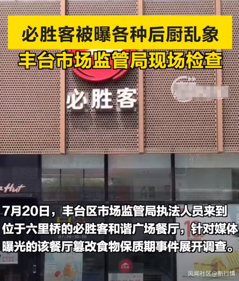 公開報道顯示,調查人員在必勝客北京和諧廣場店和魏公村店,發現門店後廚存在多種食品安全問題,餐廳管理人員篡改效期標籤,食材不按時廢棄;員工拆掉外包裝,將過期食材“化整為零”;烹炸用油長期不更換,相關指標超標近一倍等。