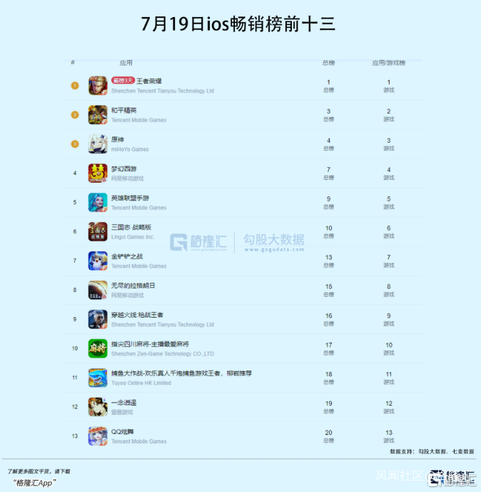 1.鵝廠,一般能在暢銷榜前十佔據4-5個席位(釘子户,王者榮耀、和平精英)。任何一款新遊戲在推出的首周,進入前三的概率非常大。
