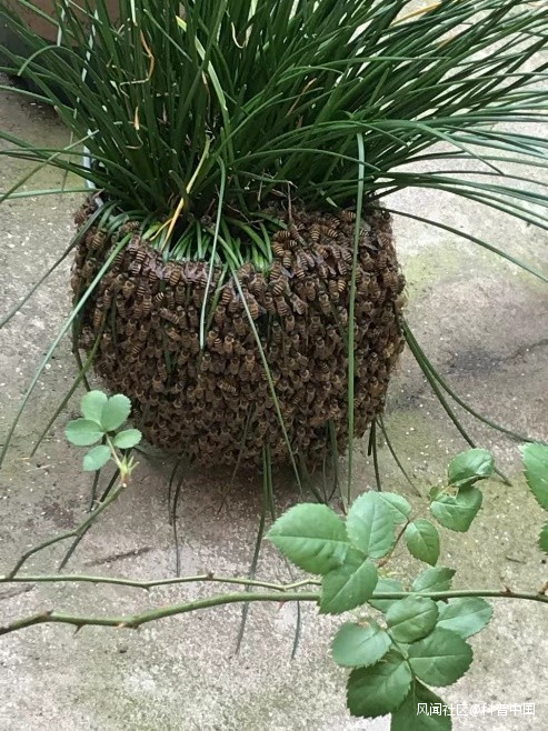 蜂羣聚集在花盆上 (圖片來源:Feya)
