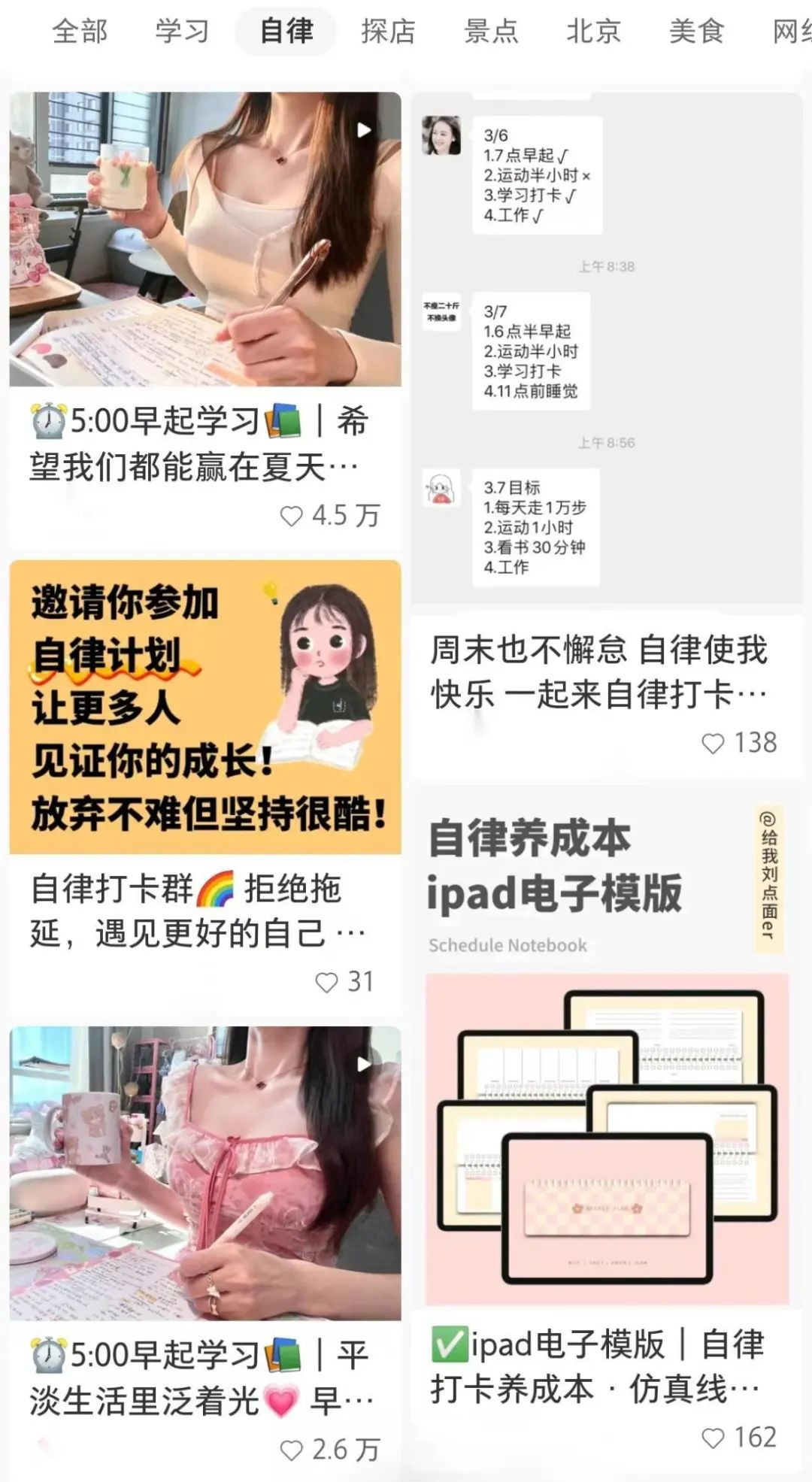市場上的“自律”基本都和“最好的自己”“大家羨慕的樣子”聯繫在一起,自律即自由,自律即成功。