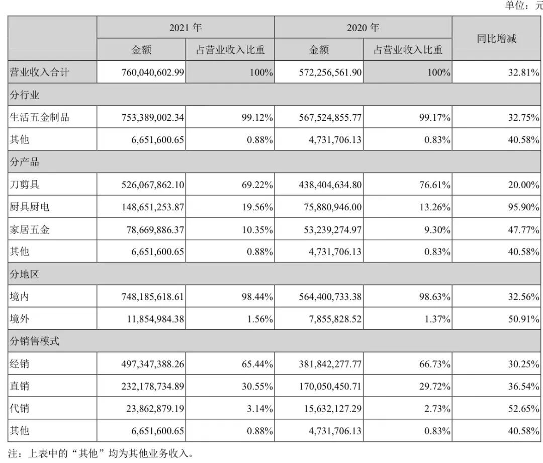 在產品拓展方面,2021年張小泉成立了廚具廚電事業部集羣以及家居五金事業部集羣,廚具廚電、家居五金兩大新產品類目共計實現銷售收入2.27億元,佔公司總體營業收入的29.91%,較上年同期增長76.05%。