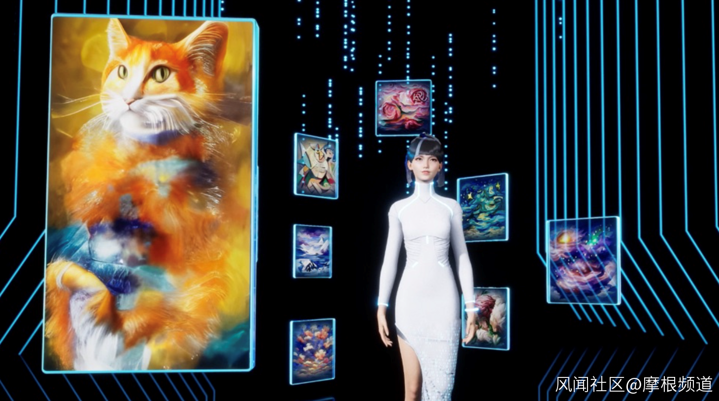 AI修復《富春山居圖》殘卷此外,百度AI數字人希加加也現場一展畫技,成功完成了撒貝寧提出的“後現代感的色彩斑斕的朦朧的貓”的考題。