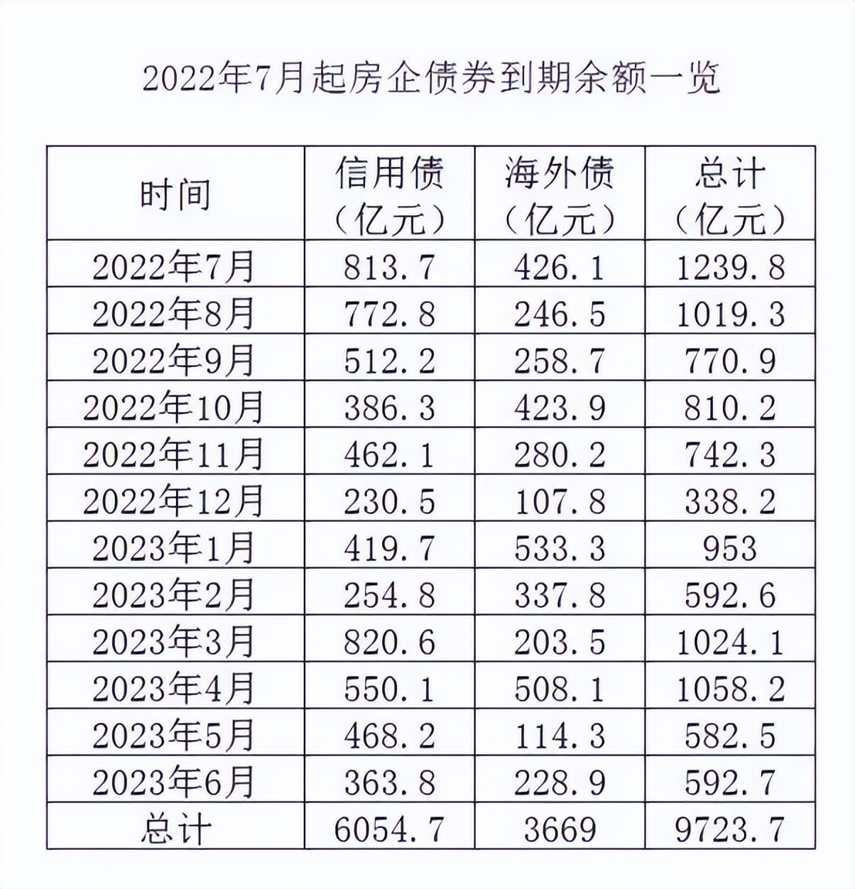 時值房企償債大年,據中指研究院統計,截至2022年6月30日,房企一年內到期債券餘額為9723.7億元,其中信用債佔比62.3%,海外債佔比37.7%,境內債務償債壓力較大;7、8月為年內第二波償債高峯,單月到期餘額超千億。